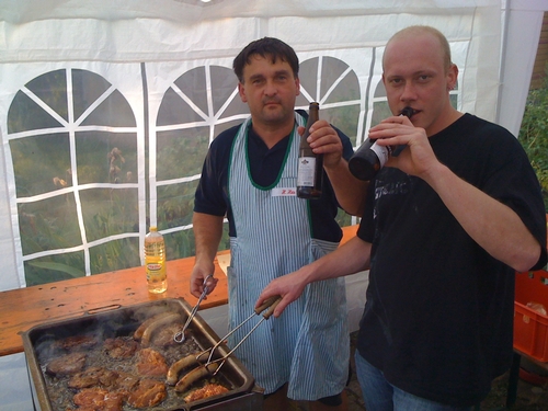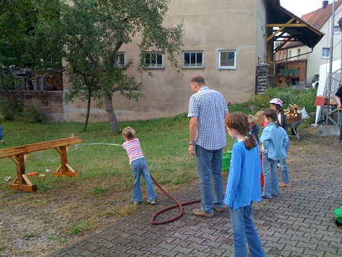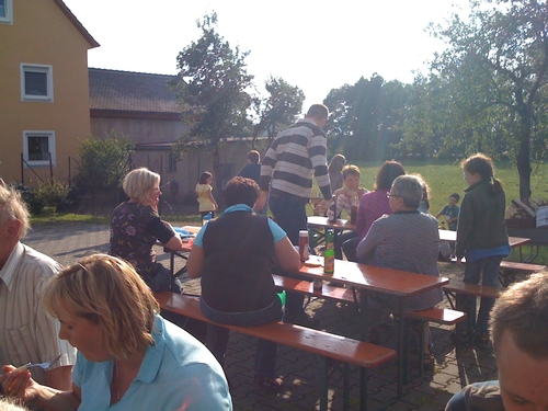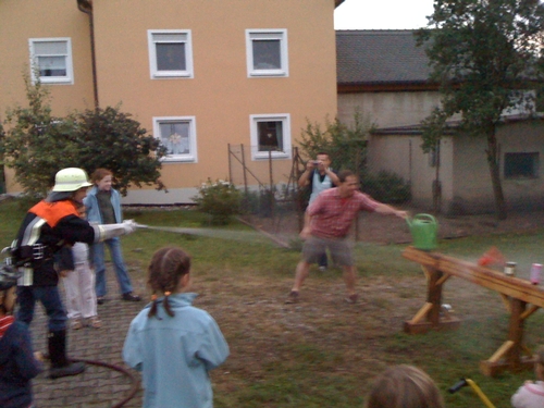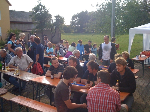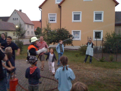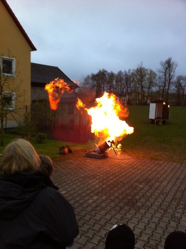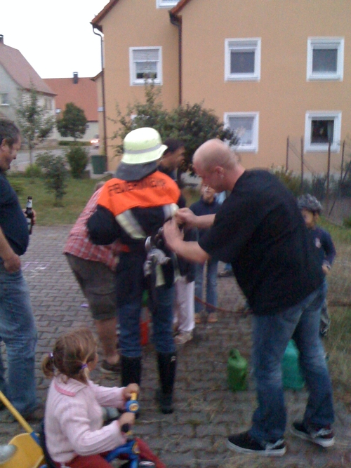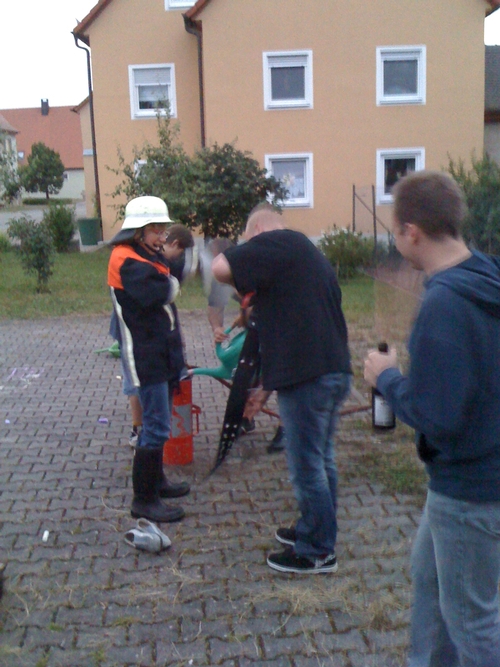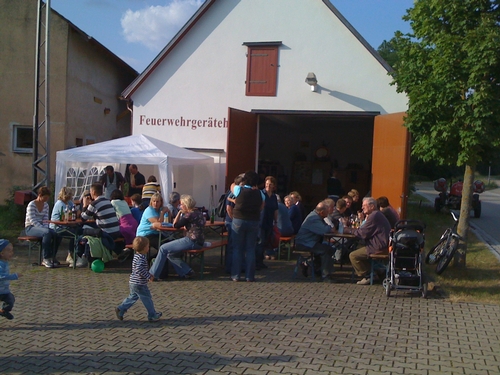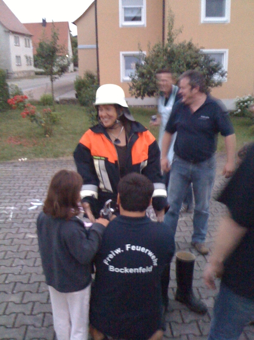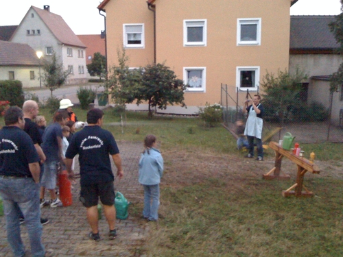Die Inbetriebnahme des neuen Hängers wurde anschließend im Rahmen eines Dorffestes gefeiert. Die Feuerwehr grillte und sorgte für das leibliche Wohl. Außerdem wurden verschiedene Vorführungen wie z.B. eine Fettbrandsimulation gezeigt. Im Anschluss konnten die Besucher mit den zu Verfügung gestellten Feuerlöschern selbst Hand anlegen und unter Aufsicht der Feuerwehr kleinere Brände selbst löschen. Mit rund siebzig Bockenfeldern war dies eine gelungene Veranstaltung im Feuerwehrhaus.