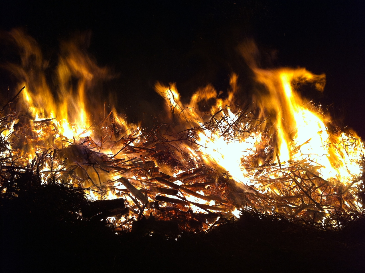 Für den Notfall Löschmittel (Eimer mit Wasser, Feuerlöscher) bereitstellen!