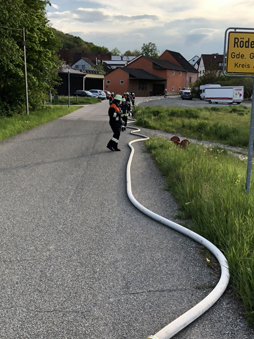 Am 17. Mai 2019 fand eine Gemeinschaftsübung der Feuerwehren Gebsattel, Kirnberg und Bockenfeld in Rödersdorf statt. Angenommenes Brandobjekt war der Stall der Familie Model. Die Feuerwehren wurden per Sirene alarmiert. Am Einsatzort erhielten die Feuerwehren die Befehle von der Einsatzleitung. Die FFW Kirnberg entnahm Wasser aus einem Rückhaltebecken und übergab an die FFW Bockenfeld, welche das Wasser weiterförderte. Die FFW Gebsattel nahm einen Schnellangriff direkt vor dem Gebäude vor und sendete Atemschutzträger in das verrauchte Gebäude um mehrere Verletzte zu retten. Anfangs wurde das Wasser vom nahelegendem Hydranten entnommen, bis von der FFW Kirnberg und Bockenfeld die dauerhafte Wasserversorgung sichergestellt wurde. Insgesamt wurden mehrere hundert Meter Schlauch verlegt und mehrere Höhenmeter überwunden. Insgesamt war es eine gelungene Übung.