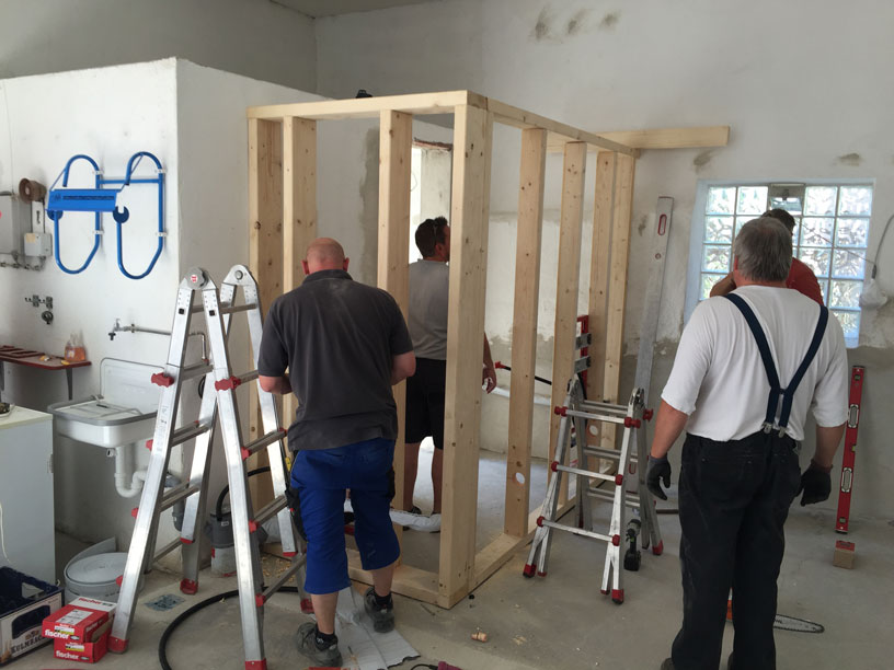 Nach unserem Grillfest hat ein kleiner Umbau unseres Feuerwehrhauses begonnen. Der Putz bröckelt von den Wänden und wir wollen eine kleine Toilette einbauen. Vielen Dank an die Gemeinde für die Unterstützung und an die vielen fleißigen Helfer. Ohne Euch hätte es nicht geklappt.